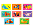 Juego de rompezabezas de cartón duro de 32 piezas, 8 animales del mar. Refuerza la percepción visual, lenguaje, habilidades cognitivas.